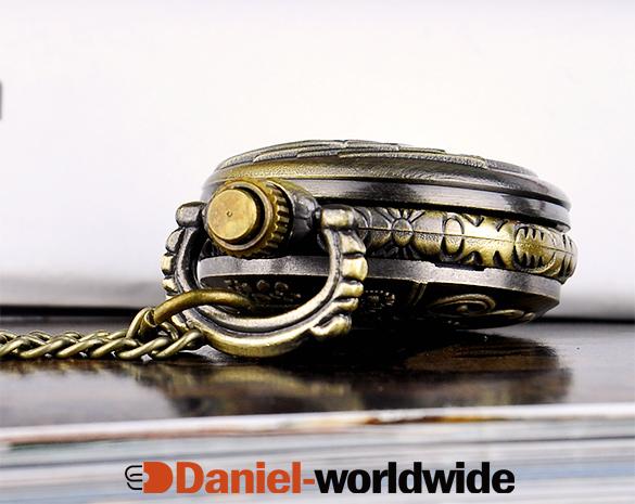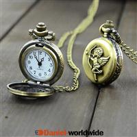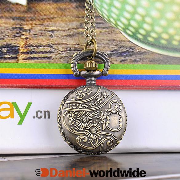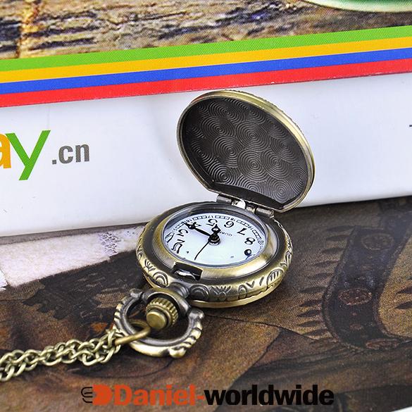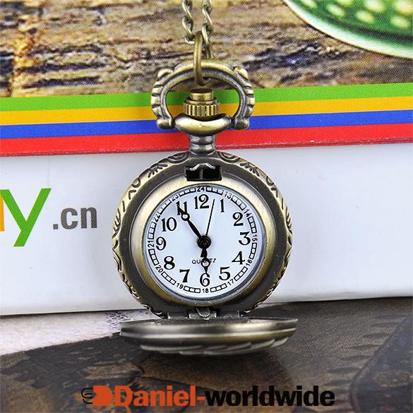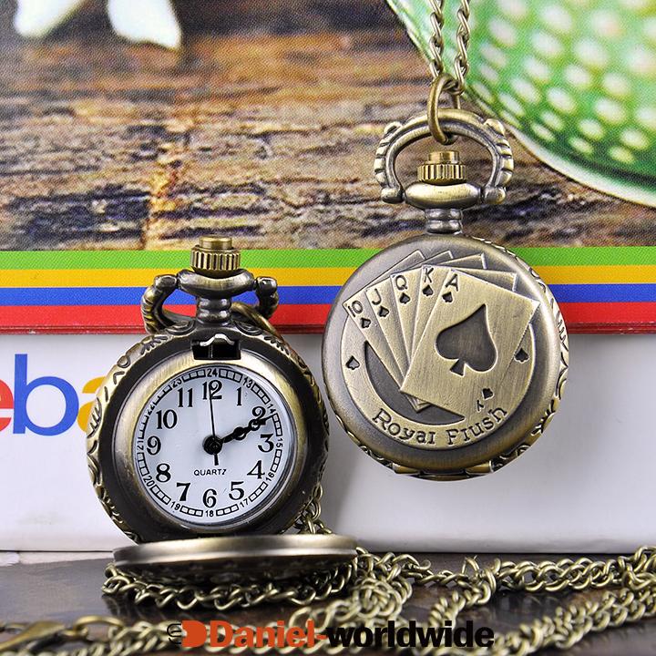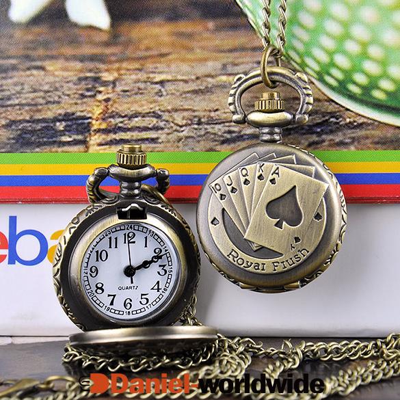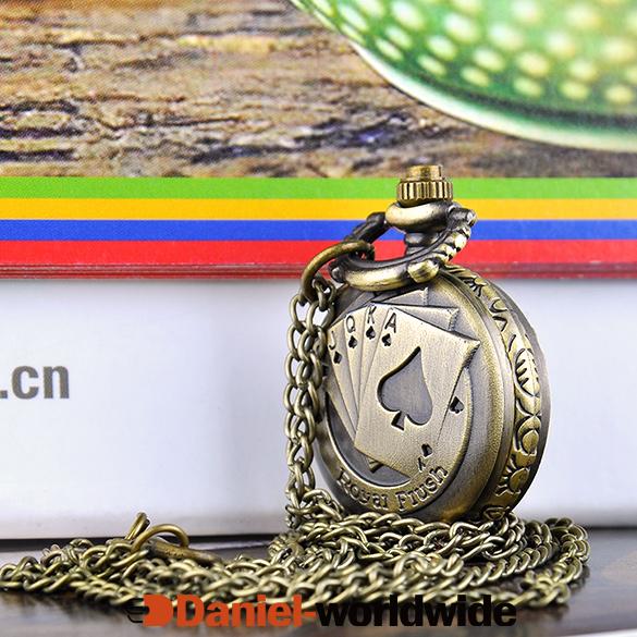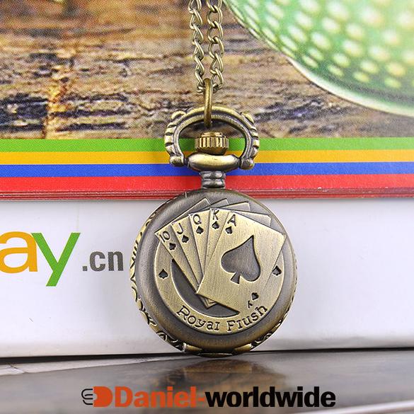 Poker Pattern Vintage Style Bronze Quartz Necklace Pocket Watch