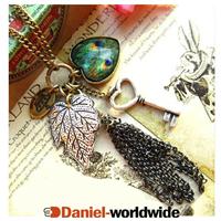 > Poker Pattern Vintage Style Bronze Quartz Necklace..