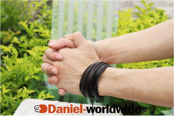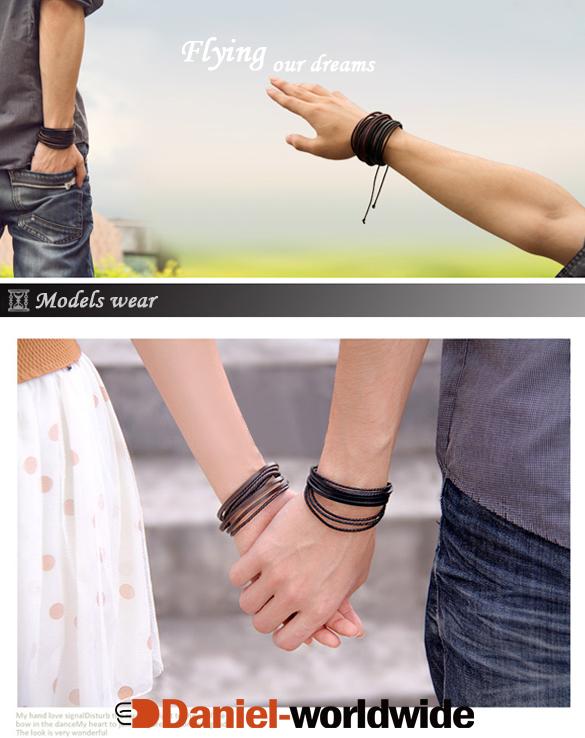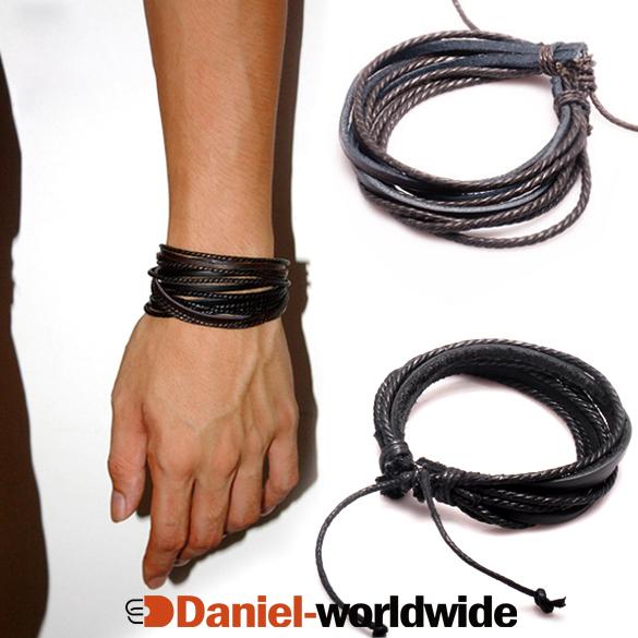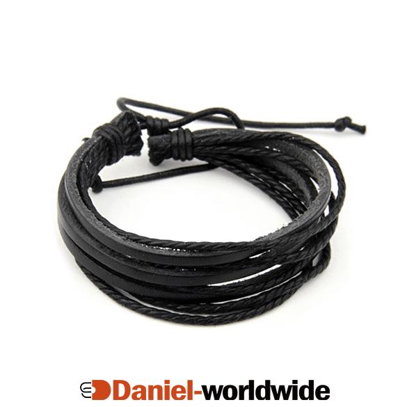 Wrap Multilayer Synthetic Leather Bracelet with Braided Rope