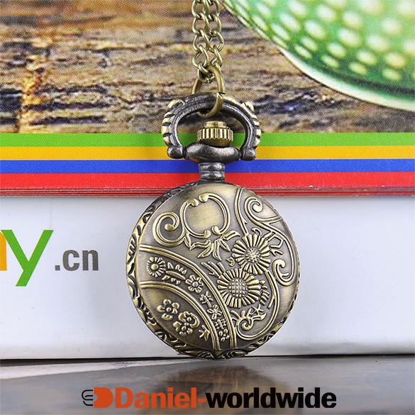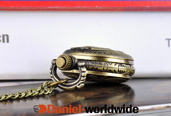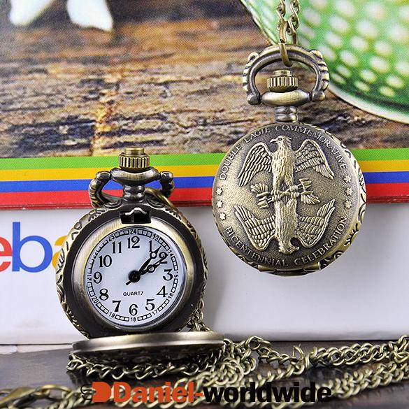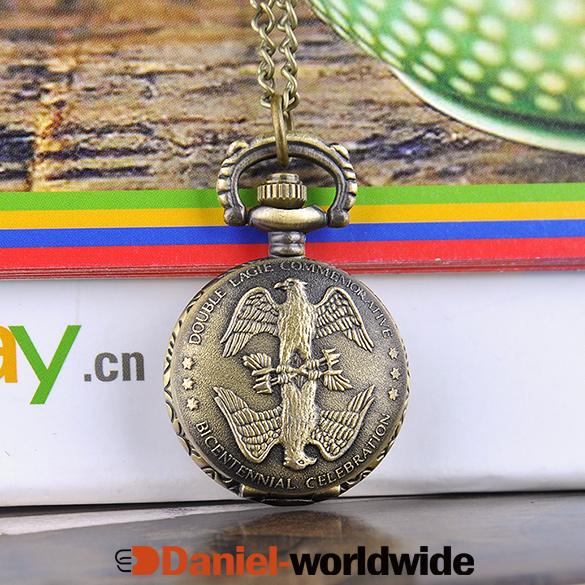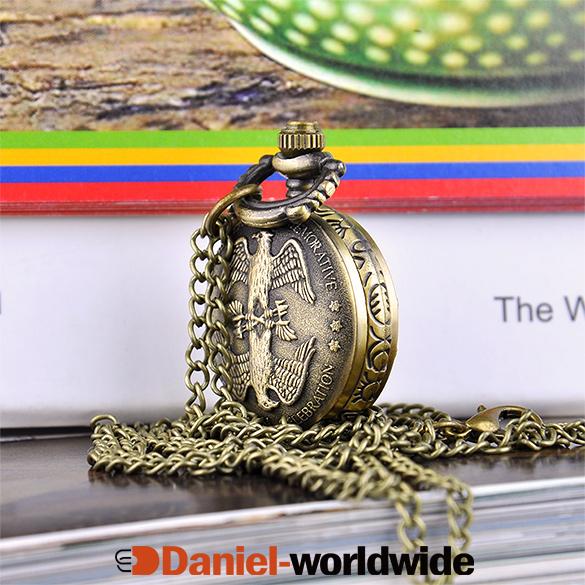 Two Eagles Vintage Style Bronze Quartz Necklace Pocket Watch