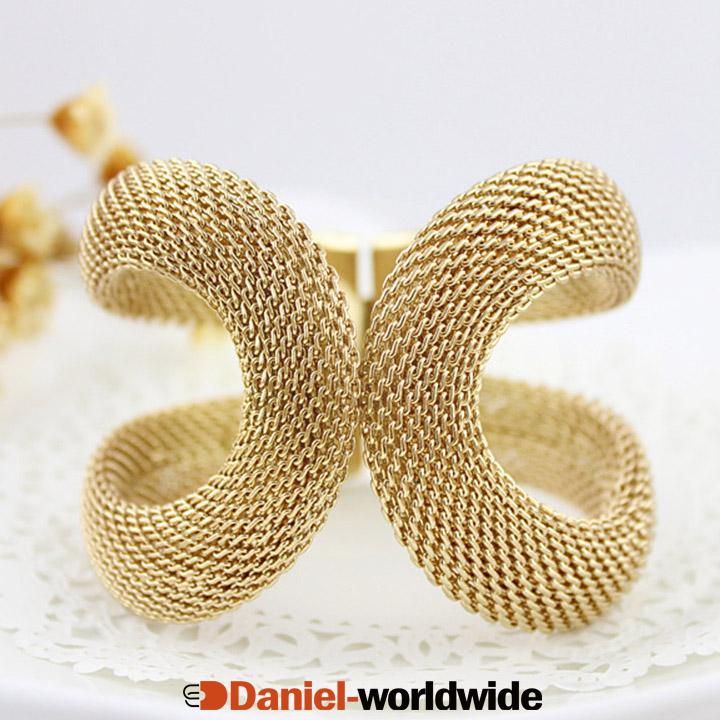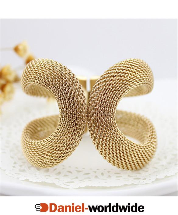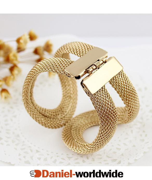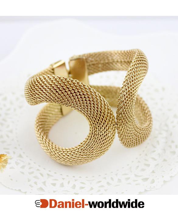 Elegant Jewelry Gold Alloy Wide with Spring Cuff Bracelet