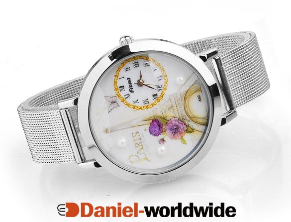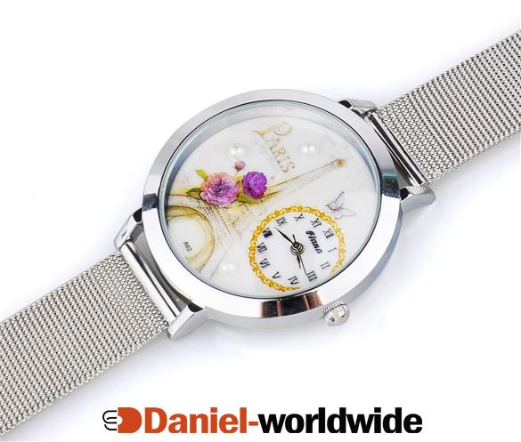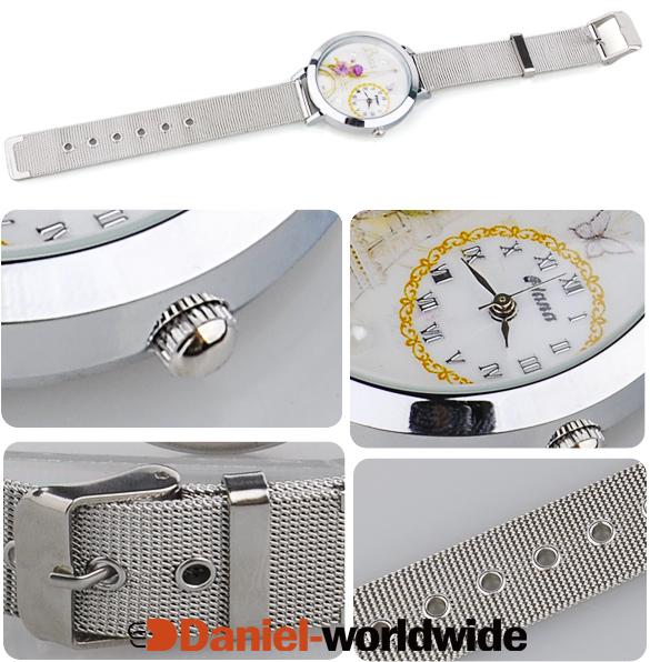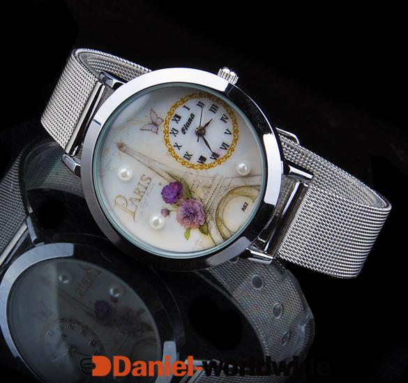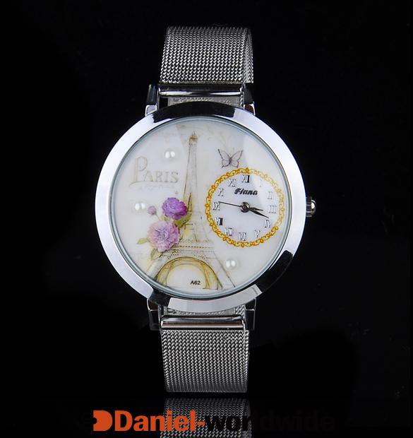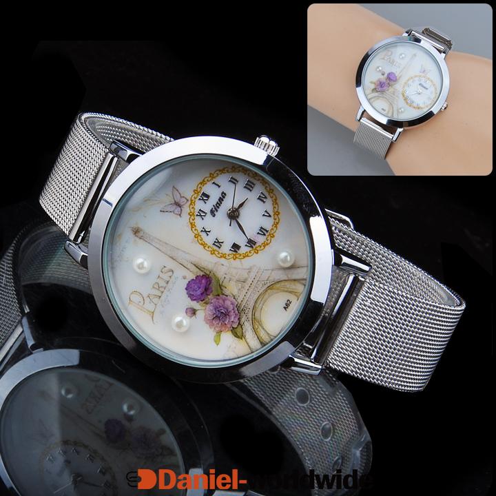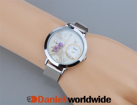 Women Round Dial Tower Steel Mesh Wrist Watch