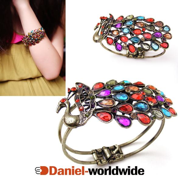 1pcs Women's Vintage Colorful Crystal Peacock Bracelet Bangle