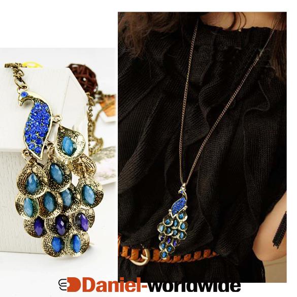> Antiqued Prancing Peacock Multi Sequin Long Neckla..