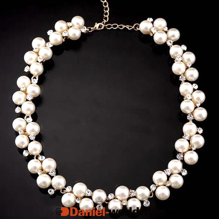 Exaggerated Rhinestone Pearl Texture Short Necklace