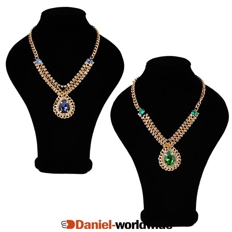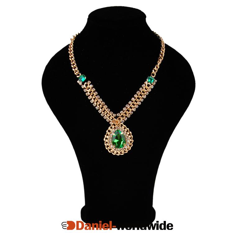Vintage Style Retro Rhinestone Precious Shiny Stone Pendant Necklace