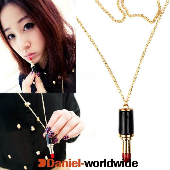 New Fashion Unique Enamel Dangling Lipstick Golden Pendent Necklace