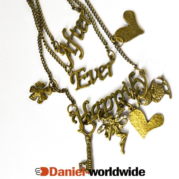 Retro Bronze Owl Beautiful Flower Key Crystal Pendant 3 Layers Necklace