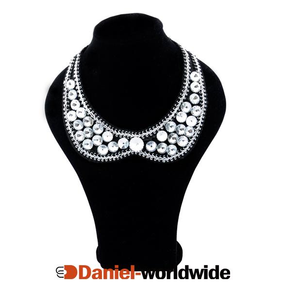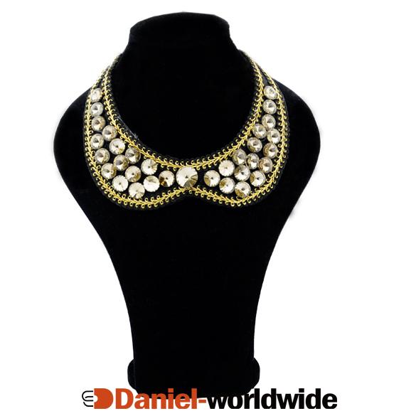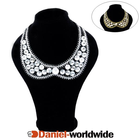 New Fashion Charms Chain Link Crystal Beads Cloth Vintage Fake Collar Rhinestone Necklace