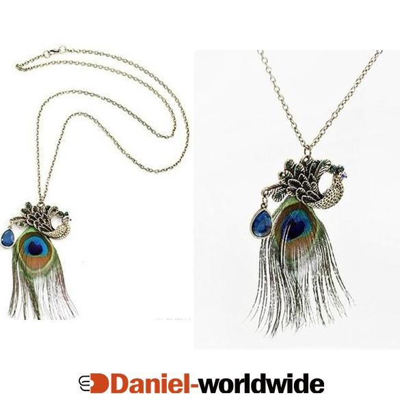 > New Retro Crystal Peacock Feather Vintage Necklace..