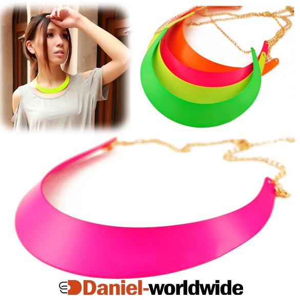 European Exaggerated Punk Wind Metal Fluorescence Candy Color Short Necklace