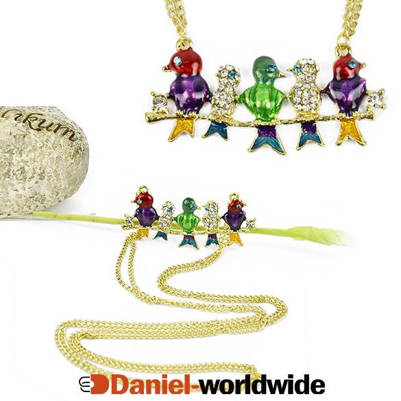 New Fashion European Alloy Full Diamond Enamel Glaze Bird Necklace