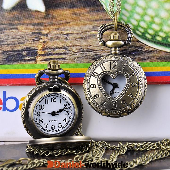 Heart Hollow Vintage Style Bronze Quartz Necklace Pocket Watch