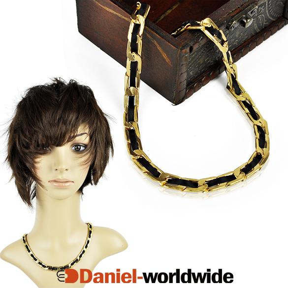 > European Style Fashion Black Ribbon Gold Chain Geo..