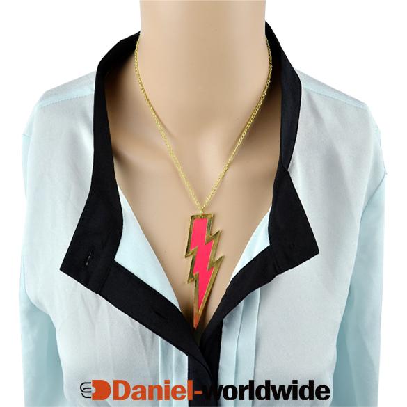 Thunderbolt Lightning Bolt Pendant Celebrity Gold Necklace Sweater Chain