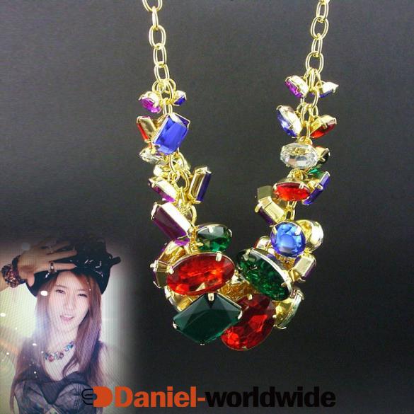 New Lady's Fashion Big Colorful Gem Pendant Adjustable Fancy Elegant Necklace