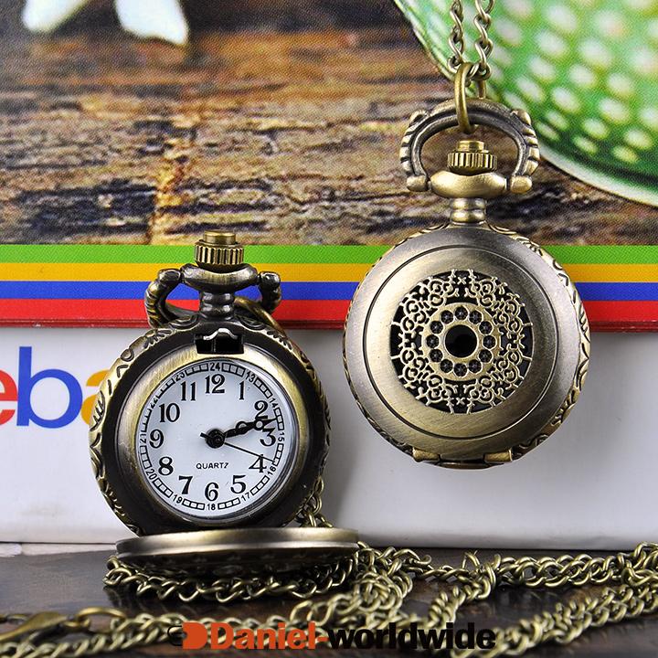 Retro Hollow Vintage Style Bronze Quartz Necklace Pocket Watch