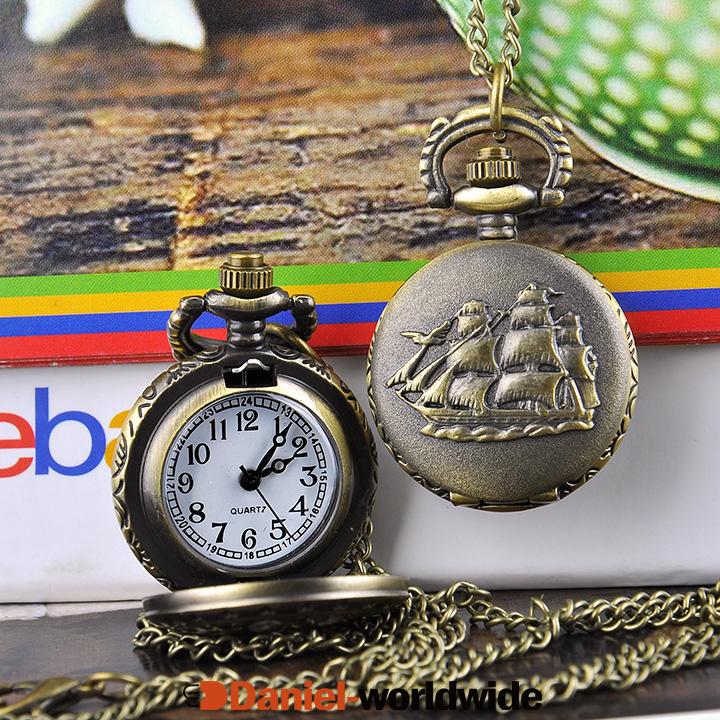 > Sailboat Vintage Style Bronze Quartz Necklace Pock..