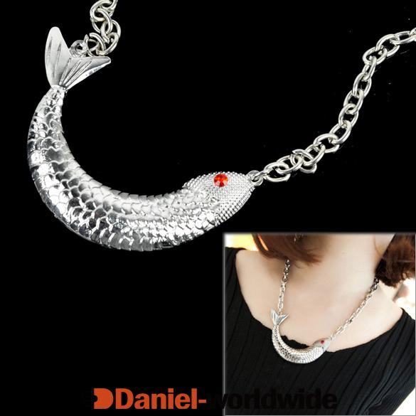 > Fashion Retro Silver Fish Charm Sweater Chain Neck..