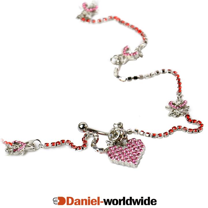 Belly navel bar with wraparound body bracelet, put it on, take it off, charm and