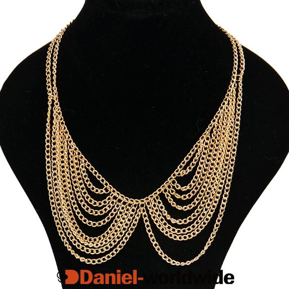 > Women Metal Multilayer Chain Tassels Choker Bib Fa..