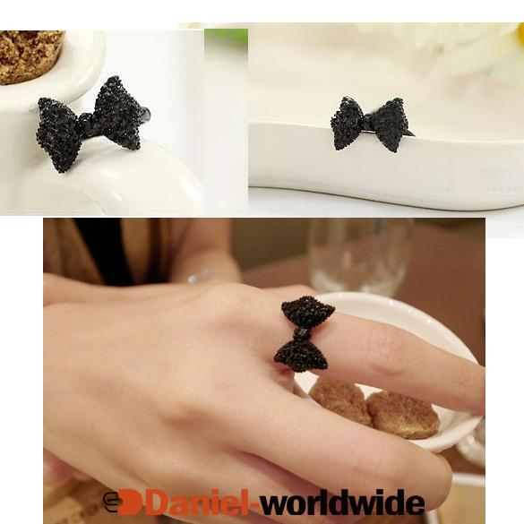 Lovely Cute Girl's Rhinestone Bowknot Bow Tie/ Butterfly Adjustable Ring
