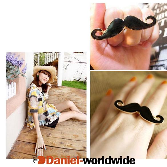 Funny Vintage Moustache Design Two Finger Ring Black