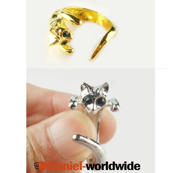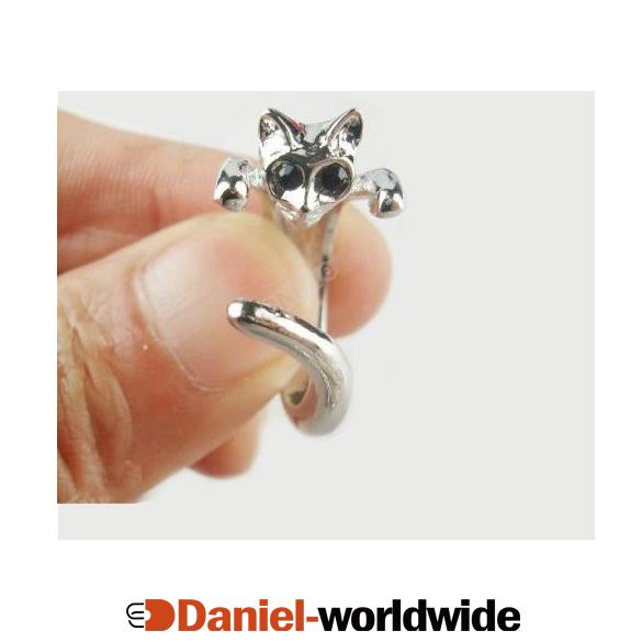 Kitten Cat Animal Adjustable Ring w Swarovski Crystal
