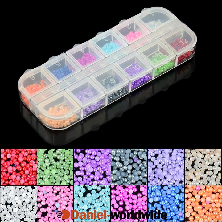 1200Pcs 2MM 12 Colors Nail Art Half Pearl Rhinestone Decoration