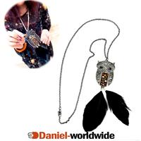 Vintage Cute Owl Carved Hollow Pendant Long S...