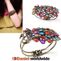 1pcs Women's Vintage Colorful Crystal Peacock...