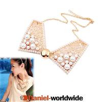 Fashion Hollowed Pearl Golden Choker Bib Bowk...