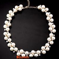 Exaggerated Rhinestone Pearl Texture Short Ne...