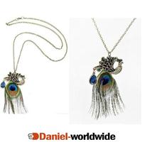 New Retro Crystal Peacock Feather Vintage Nec...