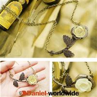 Women's Retro White Rose Bronzed Leaves Penda...