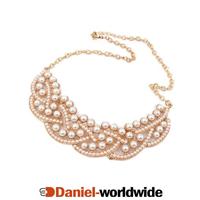 Elegant Hollowed Pearl Golden Choker Bib Fals...